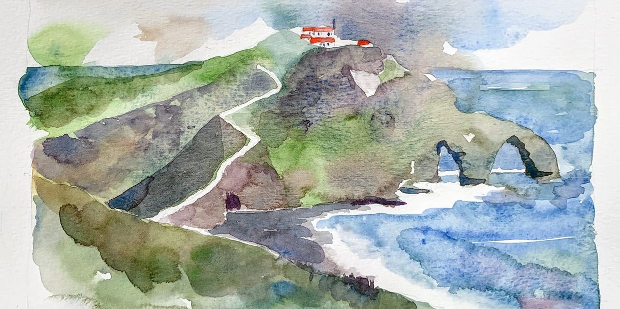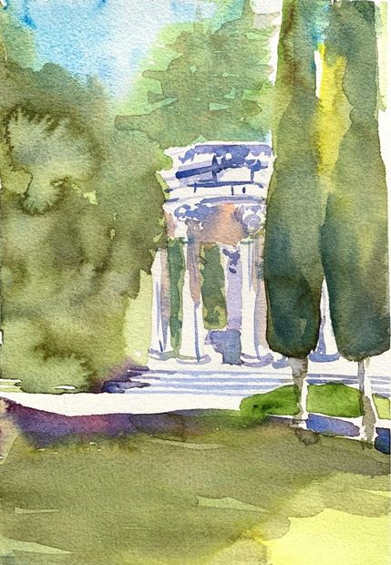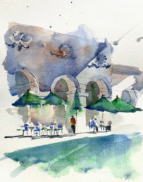 I felt loose and free enough to try this scene with a large brush and a limited color palette.