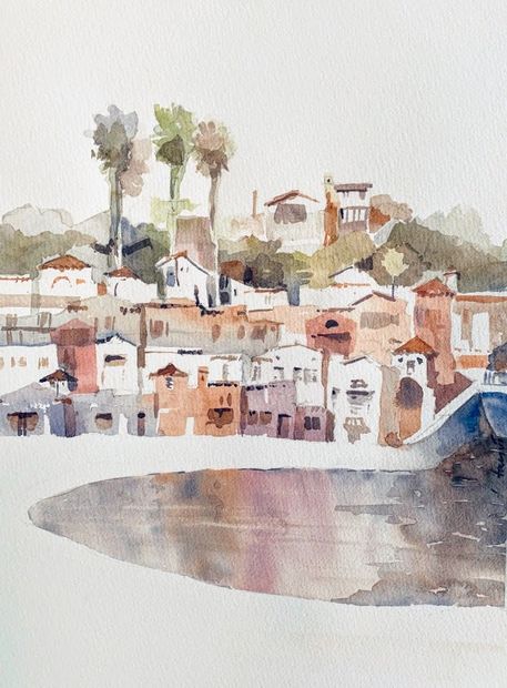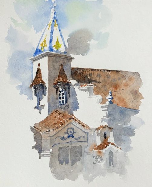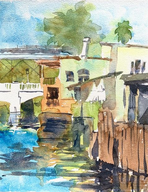 View my watercolor "Nachi Roofs" at the Cupertino Library