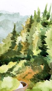 Exhausted from full days of painting in Capitola, I would see this scene on my drive home on the 8 mile windy part of Highway 17. Stuck in traffic, I could really savor the landscape among the redwoods and pines. I took pictures and painted it later at home.