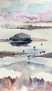 The birds outnumber the humans at these baylands. It was a bleak day so I chose a neutral palette which helped bring out the pinks and lavenders.