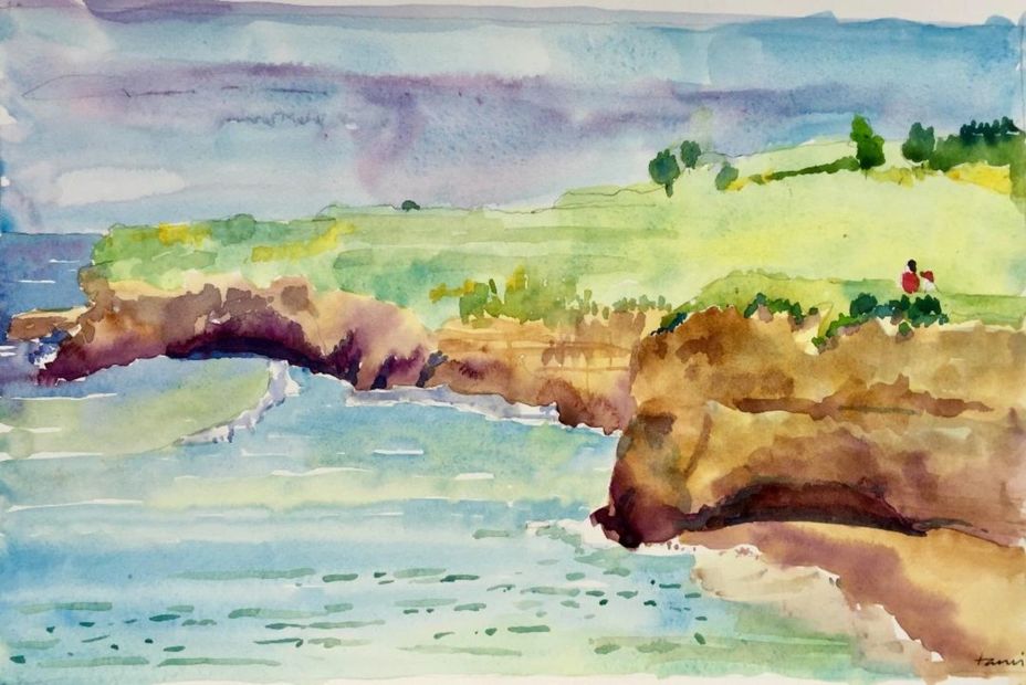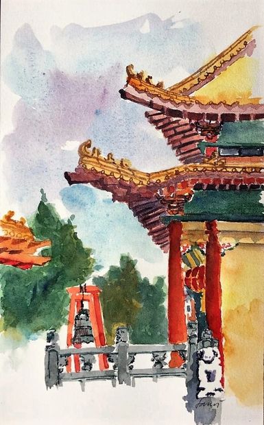 View my watercolor "Nachi Roofs" at the Cupertino Library