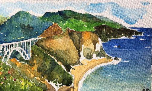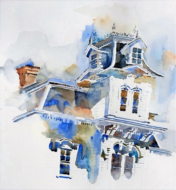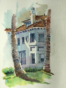 Commissioned by the Los Altos History Museum store for cards to be sold there, I enjoyed doing this quick watercolor resplendent with watermarks.