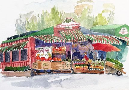 Depicting the bustling lunch scene at the weekly farmer's market at the Ferry Building in San Francisco, this tiny 3"x4" was accepted into the juried 2019 Small Works Exhibit at Key West, Florida, and sold on opening night.