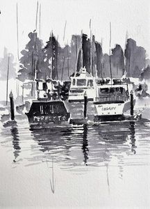 This spectacularly fascinating building-boat thingy sailed up to the dock while I was sketching. I was more concerned about how long it would stay as I rushed to finish this en plein air.